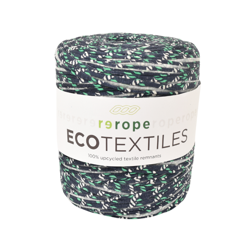 ReRope EcoTextiles include 200+ yards of upcycled textile material. The material is cut in widths ranging from 1-3" and is pulled tight to create a curled finish when spooled. This material is perfect for crafting projects such as crocheting, knitting, latch hook projects, Pom-Pom scrunchies, and other various DIY activities.